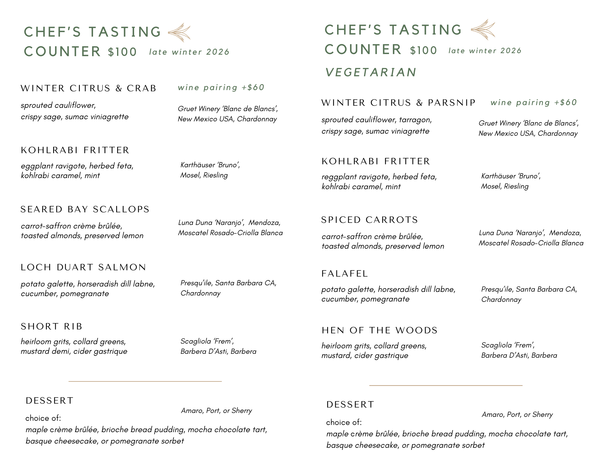 Late Winter Chef’s Tasting Menu